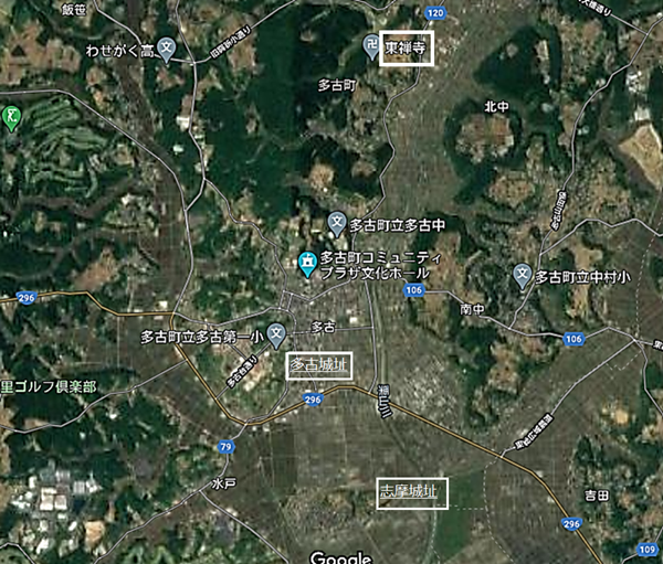 現在 城域の大半は多古台住宅団地として造成され、商業地や子供団地 バスターミナル等公共施設も備わり大きな変貌を遂げている。